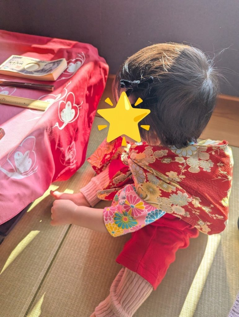 「足が小さいと草履が脱げてしまうかもしれない」とスタッフさんから助言してもらい、わが子は素足で実施しました。