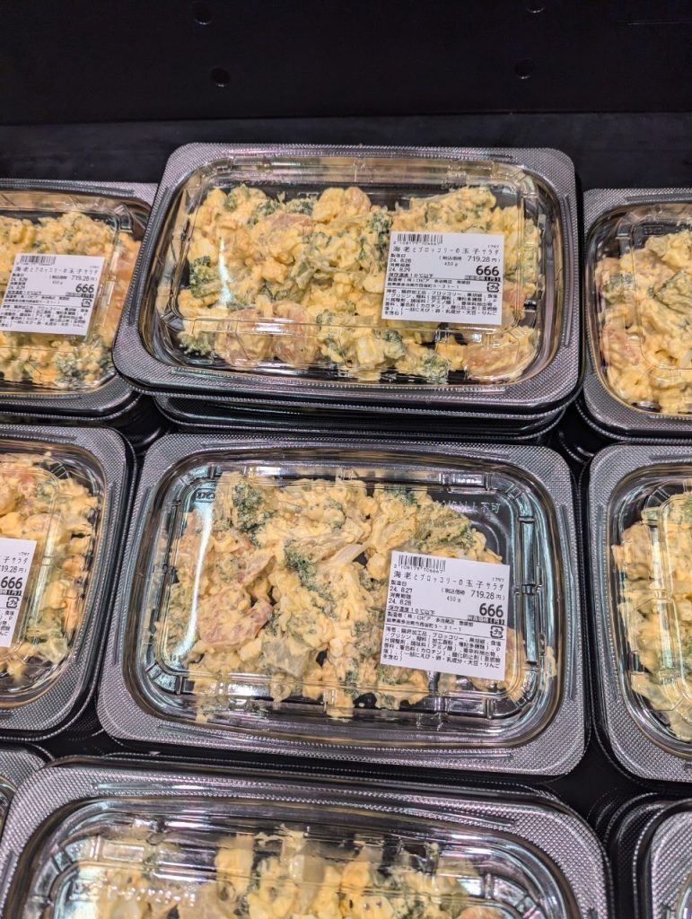 海老とブロッコリーがゴロゴロ入った、玉子サラダです。