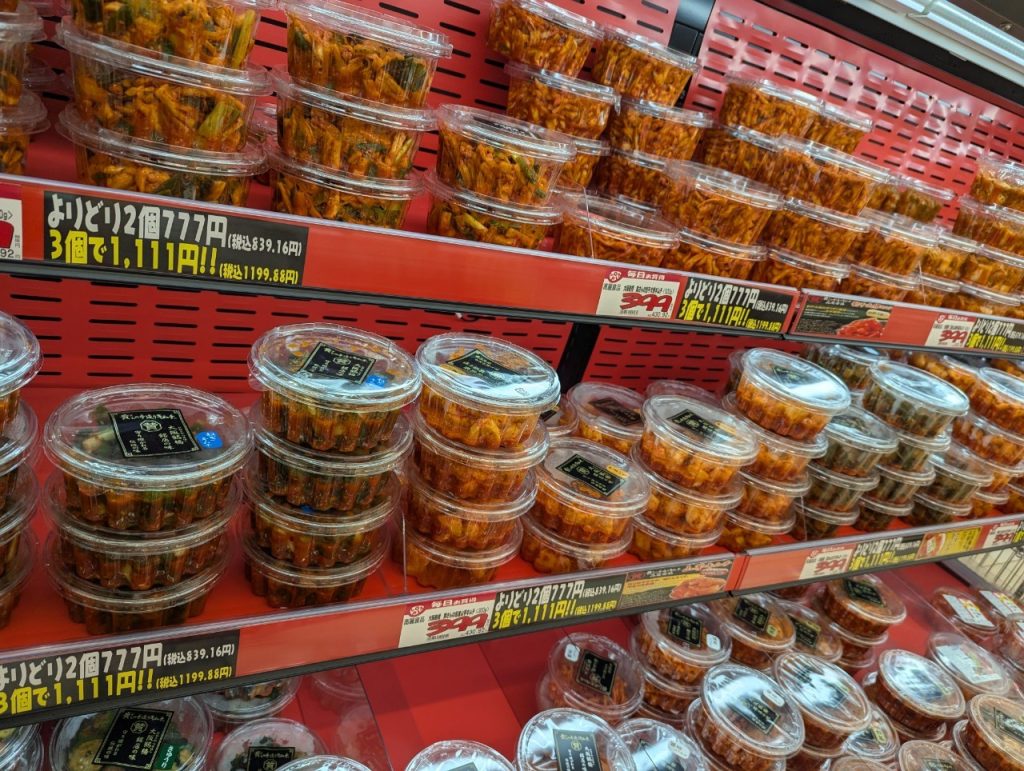 この棚だけでもいっぱいに様々な種類のキムチが陳列されていましたが、奥の棚にも同じくらいキムチのスペースがありました。