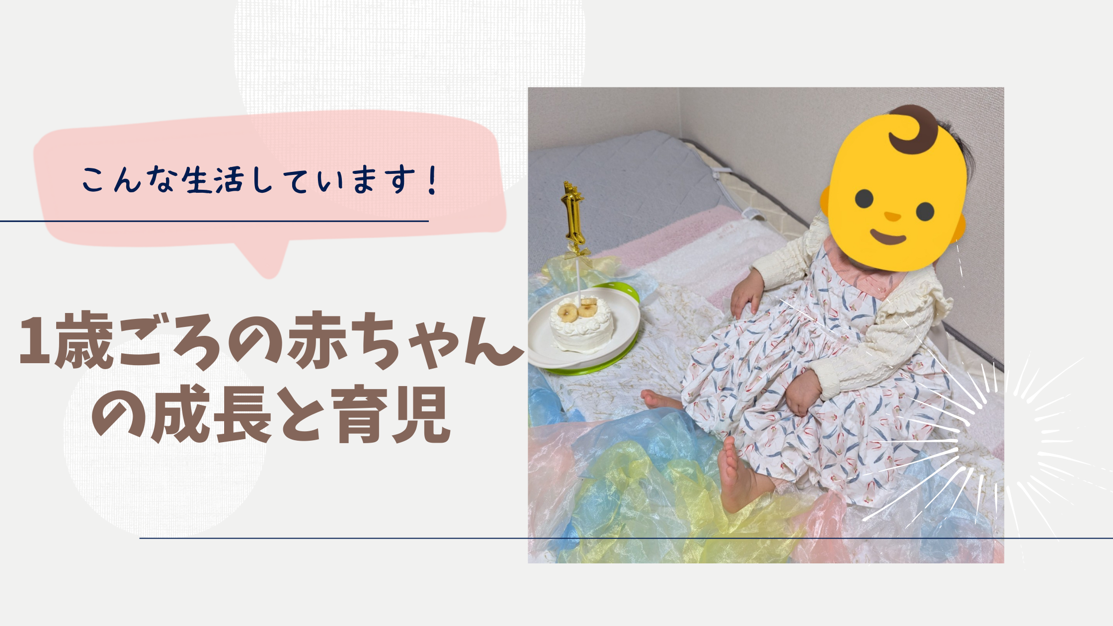 1歳ごろの一般的な赤ちゃんの成長発達と、子ごまちゃんの成長や1歳児育児のようすを書きました。