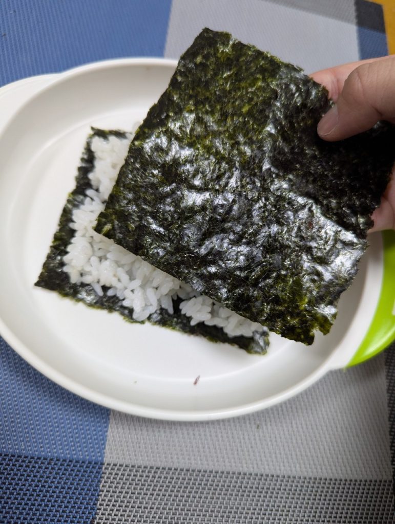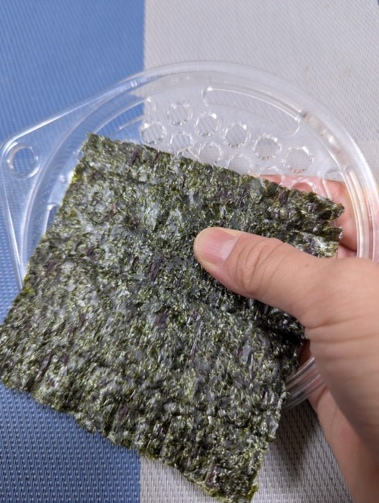 ⒉海苔を噛みちぎりやすいように、おろし金に押し当ててから使うと良い