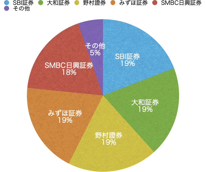 SBI証券・大和証券・野村証券・みずほ証券・SMBC日興証券です。